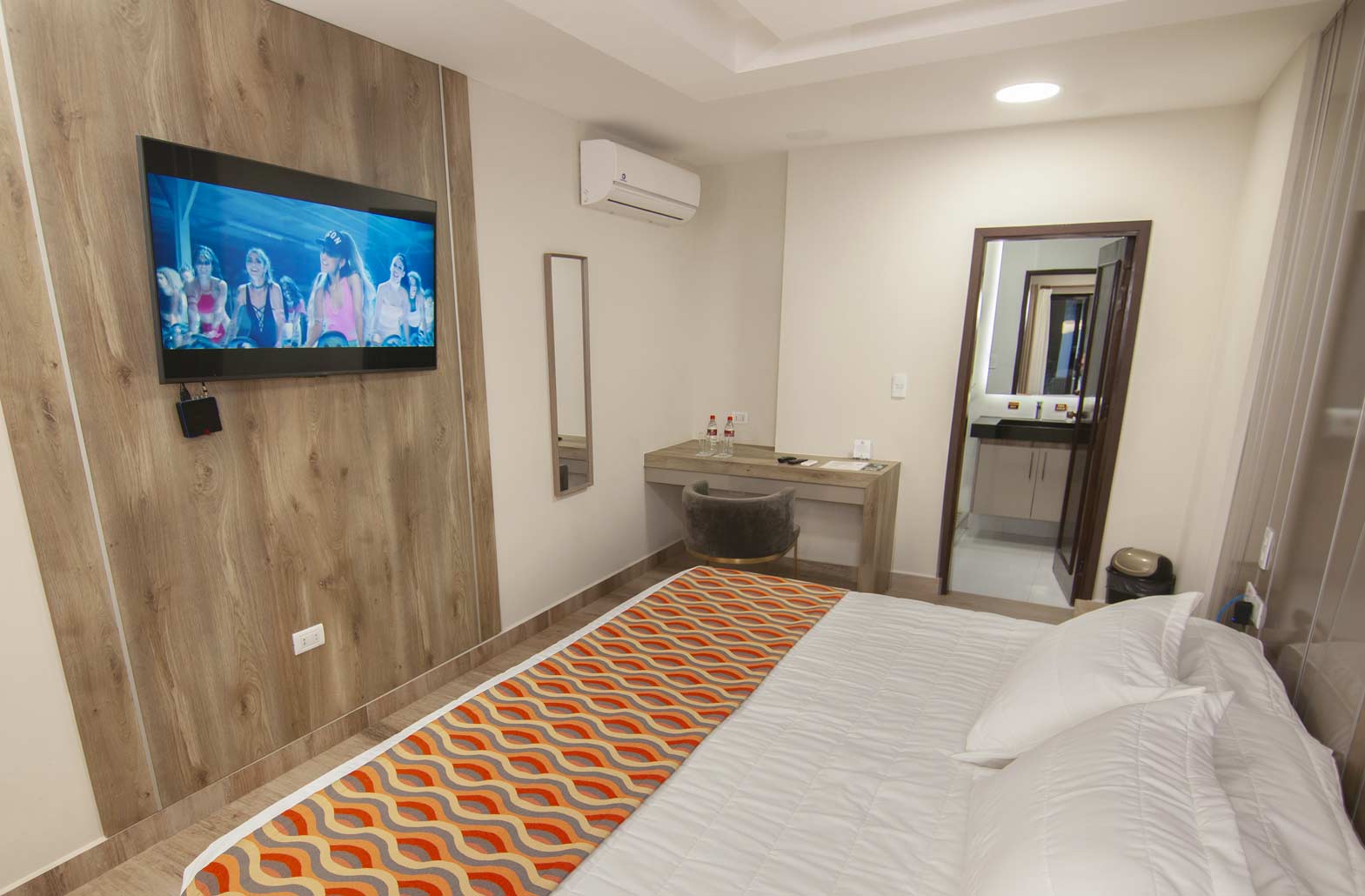Cómodo dormitorio con 1 cama queen, baño privado, internet wifi gratuito, telefonía nacional e internacional. Cuenta con escritorio para las personas que nos visitan por trabajo. Además de un Parqueo Privado.